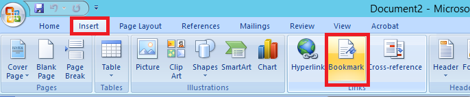 B2: Đặt bookmark trên file word